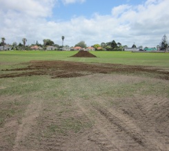 The methodology used for the upgrade of this field was unique, being built essentially in a reverse order of a traditional upgrade in order to allow works to progress while resource and building consents were under application. The existing turf surface was retained during the entire upgrade process with the existing surface initially levelled by localised application of 200 m³ of topsoil while encouraging the existing rye/kikuyu grass to grow thorough the topsoil. Following creating a suitable base, sand was incrementally topdressed onto the field to create a sand carpet.