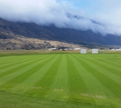 In 2016, once funding had been secured, SSDM provided QLDC with detailed design documentation for tender for the proposed sand carpet upgrade works. Included in the design was an extension of the existing four strip cricket block to allow for an additional strip on each side of the block. 'TIC golf ' together with 'TIC contracting' were awarded the contract, with physical works commencing immediately after Waitangi Day, 2017. Construction proceeded quickly without major issues with seeding of the oval taking place on 21st March and the first mow on the Oval on 18th April, with a view to hosting ICC under 19 Cricket World Cup matches in January 2018.